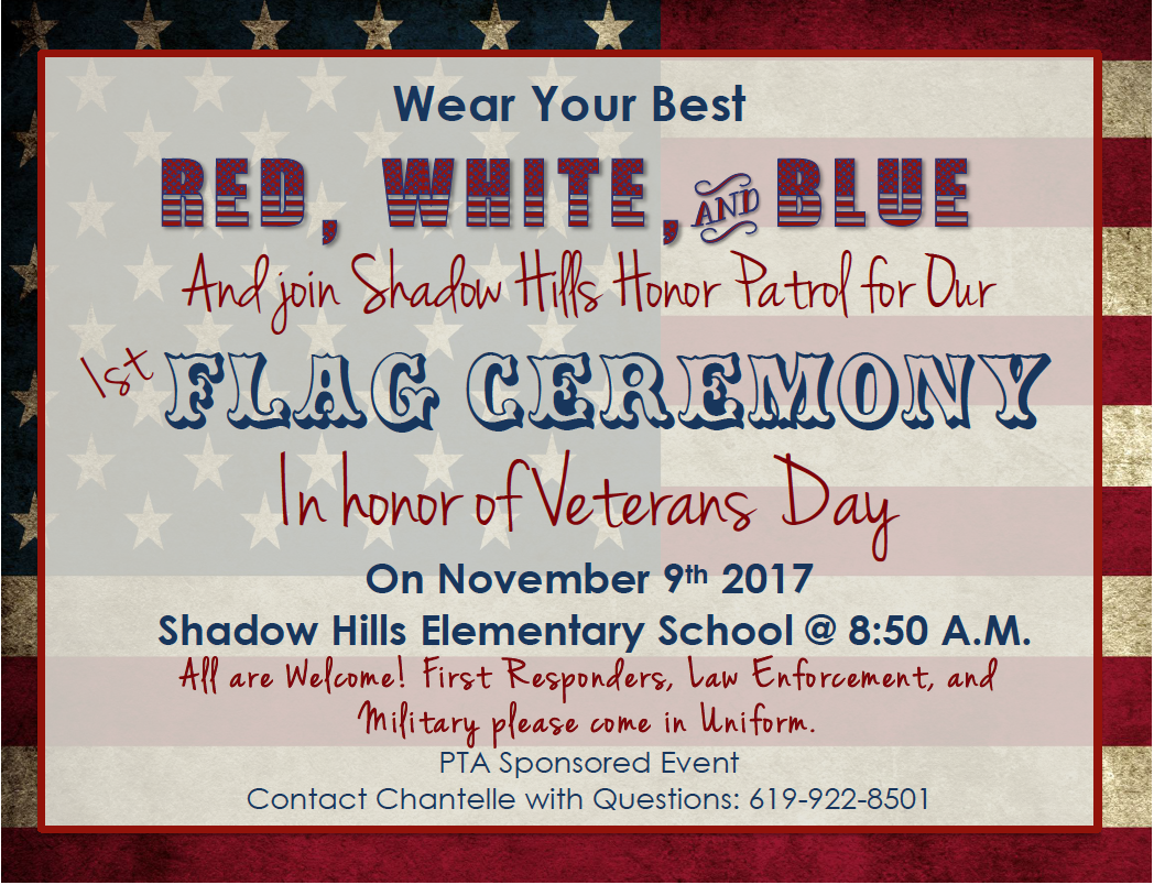 Veterans Day Flag Ceremony Shadow Hills Elementary Honor Guard Published October 25, 2017 at 1048 × 804 in Veterans Day Flag Ceremony Shadow Hills Elementary Honor Guard ← Previous Next →